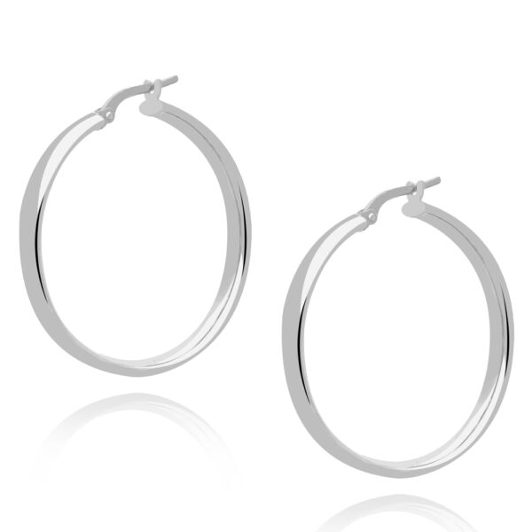 Kolczyki koła srebrne 33mm o grubości 4mm wykonane z najwyższej próby srebra 925 – bez dodatku niklu, nie uczulają. Kolczyki pokryte 3 warstwami szlachetnego rodu. Średnica kolczyków: 33mm, grubość: 4mm. Zapinane na zatrzask. Wyrób jubilerski wykonany z ogromną precyzją przez mistrzów jubilerstwa.