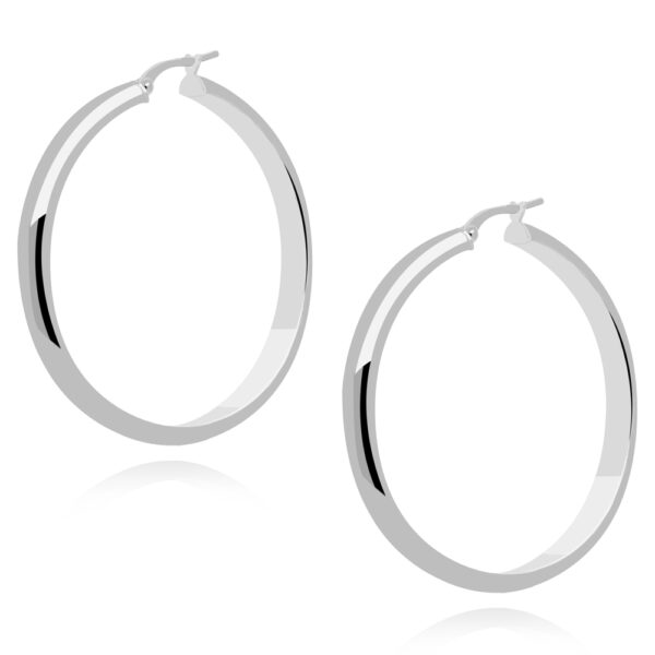 Kolczyki koła srebrne 45mm grubość 5mm wykonane z najwyższej próby srebra 925 – bez dodatku niklu, nie uczulają. Kolczyki pokryte 3 warstwami szlachetnego rodu. Średnica kolczyków: 45mm, grubość: 5mm. Zapinane na zatrzask. Wyrób jubilerski wykonany z ogromną precyzją przez mistrzów jubilerstwa.