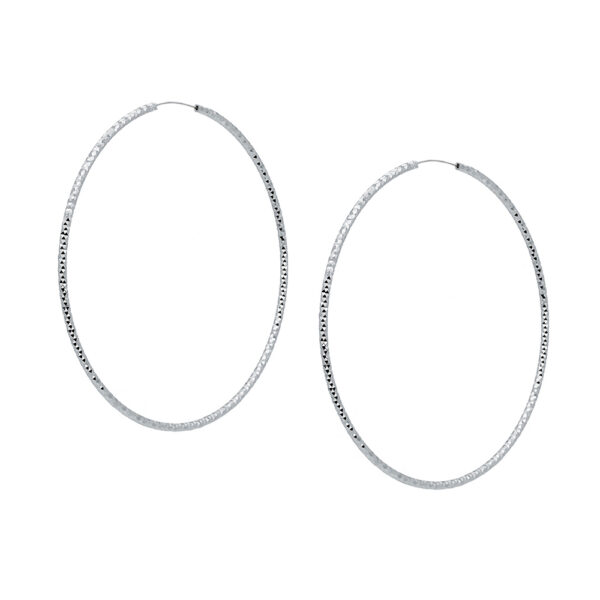 Kolczyki koła wykonane ze srebra 925, dodatkowo uszlachetnione warstwą rodu. Średnica kolczyków: 5.5 cm. Eleganckie i kobiece kolczyki. Zawsze modny i ponadczasowy wzór idealny na każdą okazję. Kolczyki te idealnie uzupełnią Twoją kolekcję biżuterii oraz podkreślą każdą stylizację !
