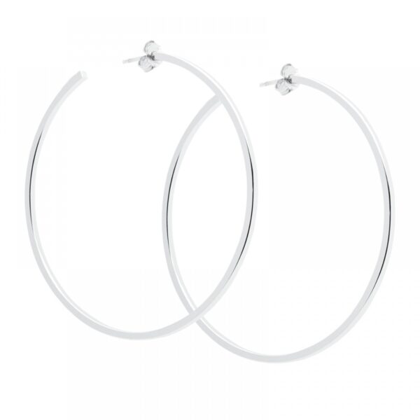 Kolczyki koła wykonane ze srebra uszlachetnionego rodem próby 925. Kolczyki koła to idealne uzupełnienie każdej stylizacji. Wysokość kolczyków: 68 mm