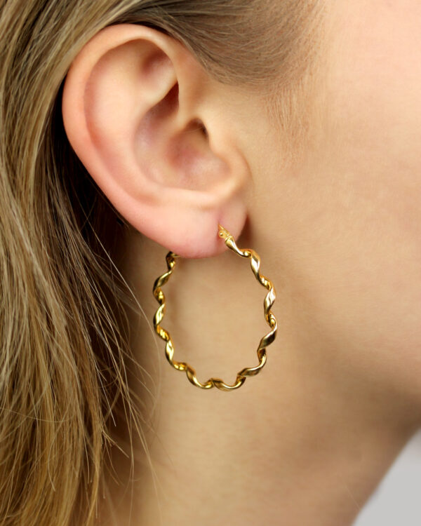 Kolczyki koła srebrne pozłacane 4 cm wykonane z najwyższej próby srebra 925 – bez dodatku niklu, nie uczulają. Kolczyki pokryte 3 warstwami 24 karatowego złota. Średnica koła: 4 cm. Zapinane na zastrzask.