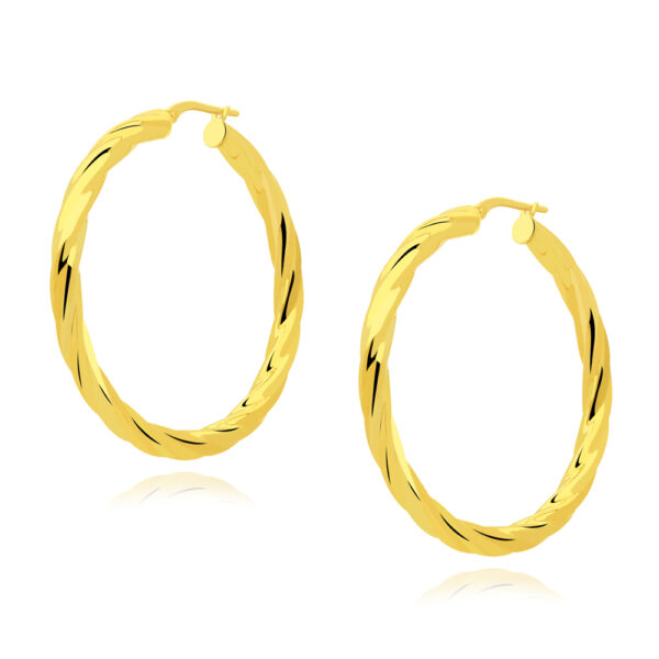 Kolczyki koła srebrne pozłacane błyszczące 48mm. Biżuteria wykonana z najwyższej próby srebra 925 – bez dodatku niklu, nie uczula. Kolczyki pokryte 3 warstwami 24 karatowego złota. Średnica koła: 48mm. Zapinane na zatrzask.