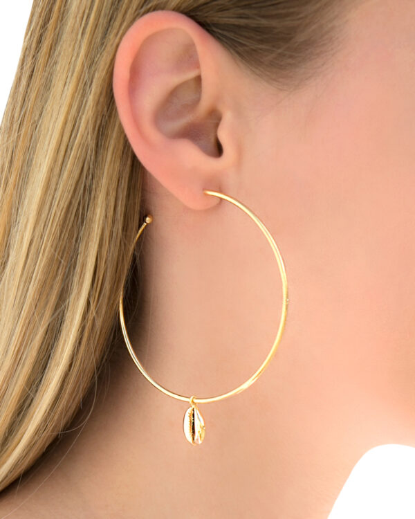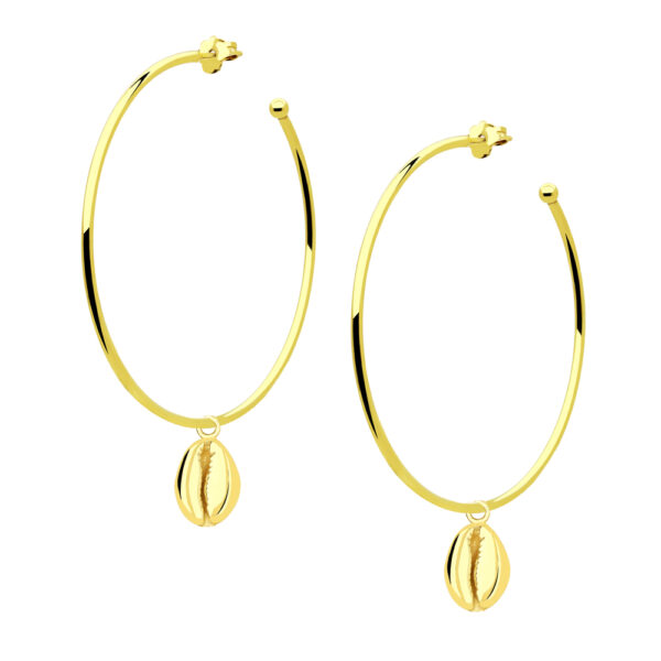 Kolczyki koła wykonane ze srebra próby 925. Kolczyki uszlachetnione 3 mikronami 24 karatowego złota. Kolczyki zapinane na sztyft. Średnica kolczyków: 6 cm. Kolczyki ozdobione zawieszką w kształcie muszelki, najbardziej pożądanym dodatkiem letniego sezonu ! Wysokość muszelki: 15 mm. Kolczyki z muszelką idealnie dopełnią Twoją letnią kolekcję biżuterii ! Postaw na mocny letni akcent, a cały Twój look nabierze wakacyjnego powiewu!
