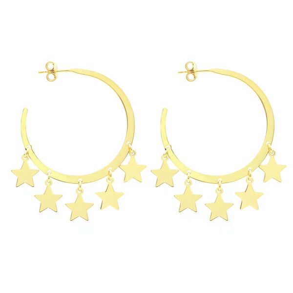 Kolczyki koła srebrne pozłacane z wiszącymi gwiazdkami