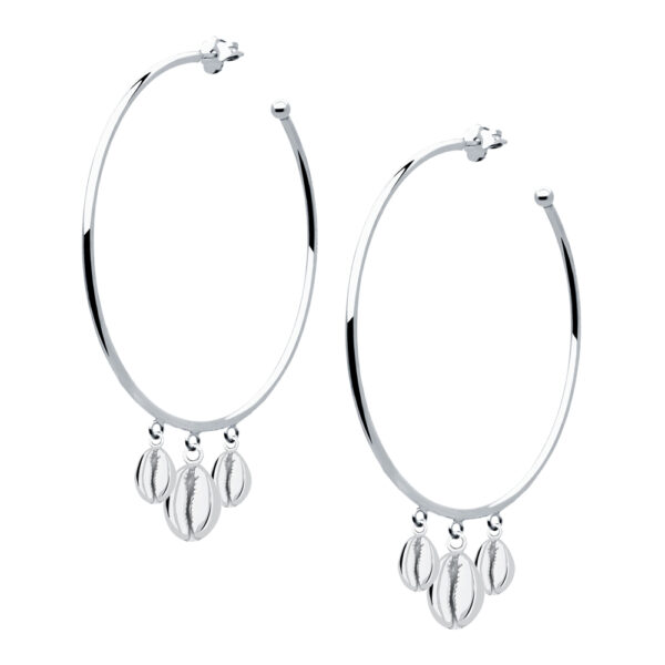 Kolczyki koła wykonane ze srebra próby 925. Kolczyki uszlachetnione warstwą rodu. Kolczyki zapinane na sztyft. Średnica kolczyków: 6 cm. Kolczyki ozdobione zawieszkami w kształcie muszelek, najbardziej pożądany dodatek letniego sezonu ! Wysokość muszelek: 15-20 mm. Kolczyki z muszelkami idealnie dopełnią Twoją letnią kolekcję biżuterii ! Postaw na mocny letni akcent, a cały Twój look nabierze wakacyjnego powiewu!
