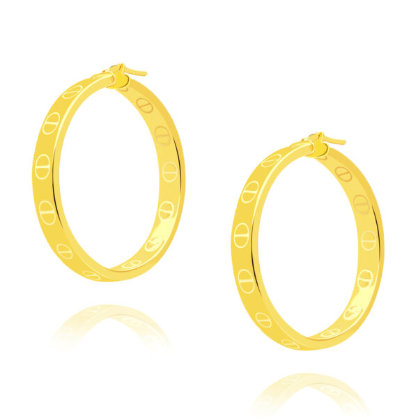 Kolczyki koła szerokie srebrne pozłacane 41 mm wykonane z najwyższej próby srebra 925 – bez dodatku niklu, nie uczula. Kolczyki pokryte 3 warstwami 24 karatowego złota. Średnica kolczyków: 41 mm. Zapinane na zatrzask. Wyrób jubilerski wykonany z ogromną precyzją przez mistrzów jubilerstwa.