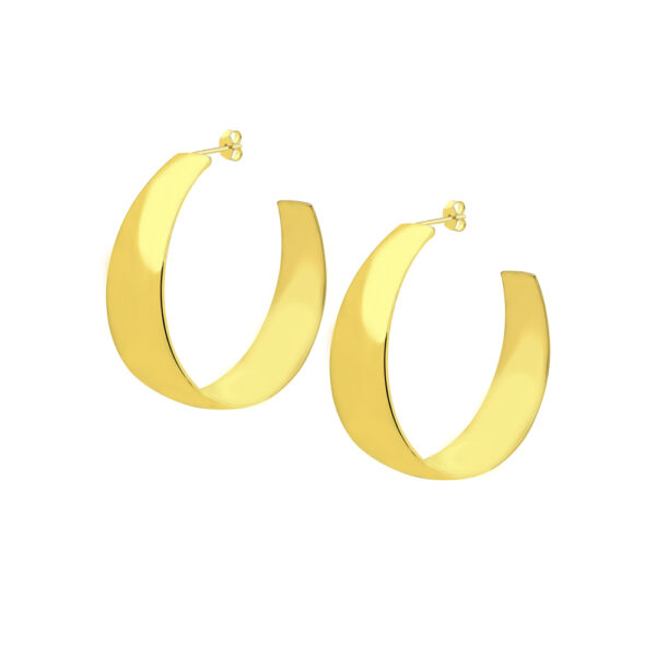 Kolczyki wykonane ze srebra próby 925, dodatkowo uszlachetnione warstwą 18 karatowego złota. Wysokość kolczyków: 4 cm. Szerokość: 1.5 cm.
