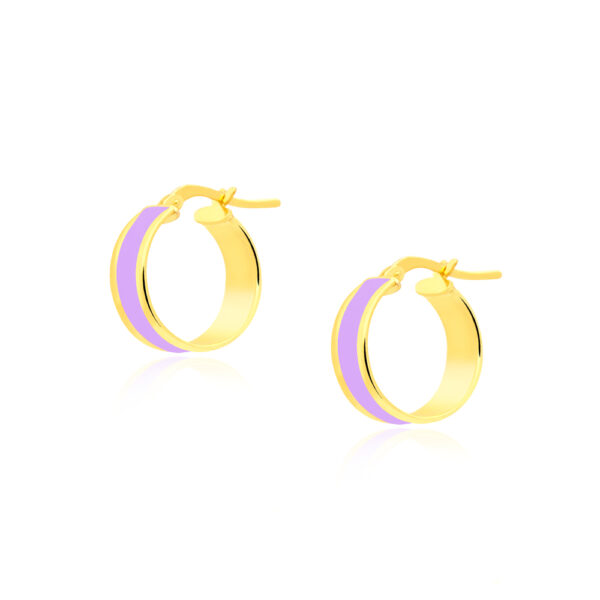 Kolczyki koła z fioletową emalią srebrne pozłacane wykonano z najwyższej próby srebra 925 – bez niklu, nie uczulają.