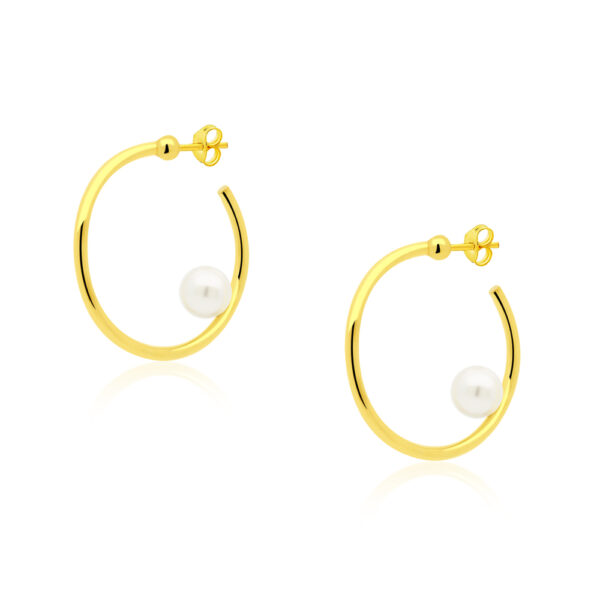 Kolczyki koła z perłami srebrne pozłacane wykonane z najwyższej próby srebra 925 – bez dodatku niklu, nie uczula. Kolczyki pokryte 3 warstwami 24 karatowego złota. Średnica kolczyków: 27mm. Średnica perły: 6mm. Zapinane na sztyft. Ozdobione naturalną perłą hodowlaną słodkowodną. Wyrób jubilerski wykonany z ogromną precyzją przez mistrzów jubilerstwa.