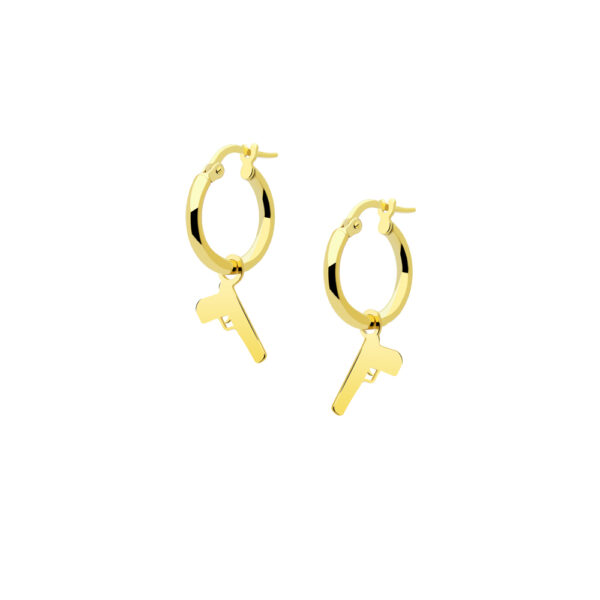 Kolczyki koła z zawieszkami pistolet srebrne pozłacane