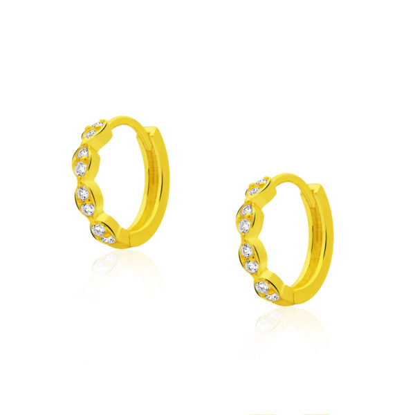 Kolczyki kółeczka srebrne pozłacane z białą cyrkonią