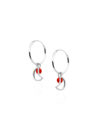Kolczyki kółeczka z księżycem i czerwonym koralikiem srebrne