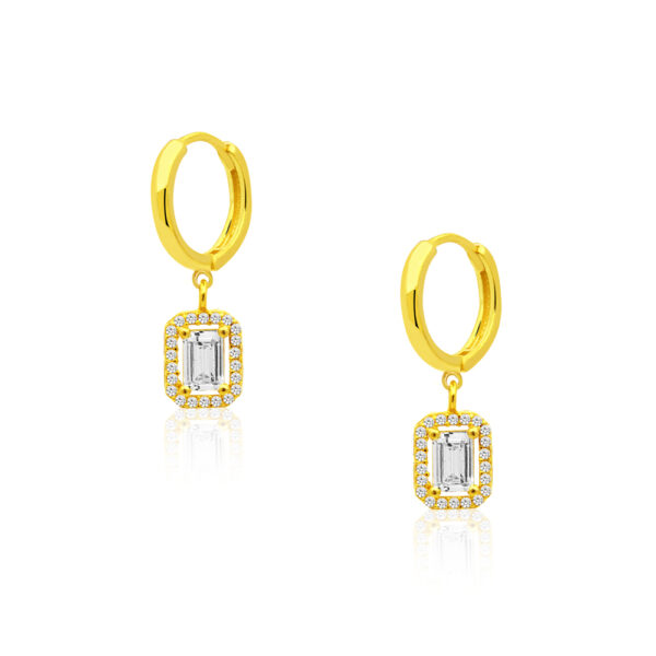 Kolczyki kółeczka z wiszącą cyrkonią bagietkową srebrne pozłacane