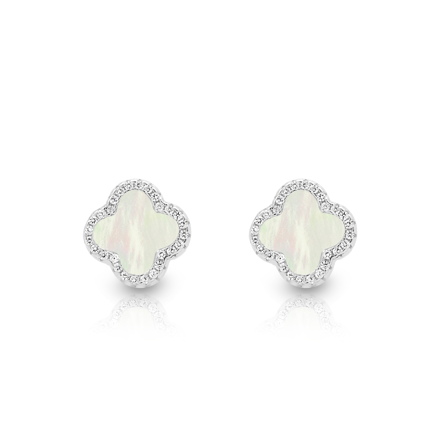 Kolczyki ze srebra o wyjątkowym designie, wzbudzają zachwyt swoją elegancją i finezją. Ich wyjątkową cechą jest koniczynka z masy perłowej otoczona cyrkoniami.