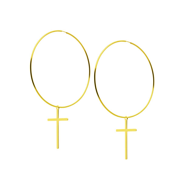 Kolczyki krzyże srebrne pozłacane koła 5,5 cm