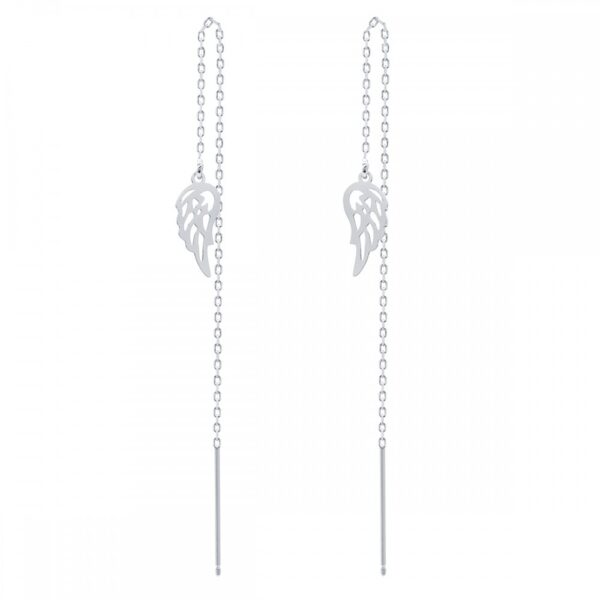 Kolczyki przeciągane srebrne skrzydła. Kolczyki wykonane z najwyższej próby srebra 925 – bez dodatku niklu, nie uczulają. Biżuteria pokryta 3 warstwami szlachetnego rodu. Długość łańcuszka: 11,5 cm. Zawieszka anielskie ażurowe skrzydło o strukturze gładkiej, polerowanej i błyszczącej o wymiarach: 15×8 mm. Kolczyki z łańcuszkiem typu ankier, przeciągane. Splot ankier jest jednym z najmocniejszych splotów, odpornym na zerwanie oraz uszkodzenia. Wyrób jubilerski wysokiej jakości wykonany przez mistrzów jubilerstwa z dużą precyzją i dbałością o detale.