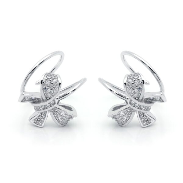 Kolczyki spirale srebrne kokardki z cyrkoniami