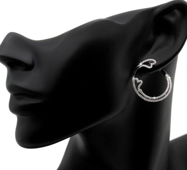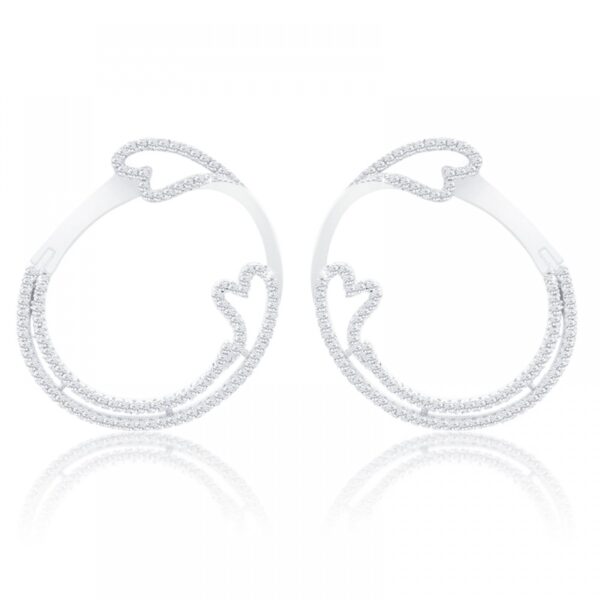 Kolczyki srebrne kółeczka z serduszkami i białą cyrkonią