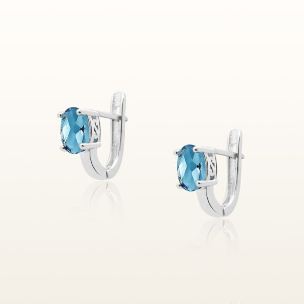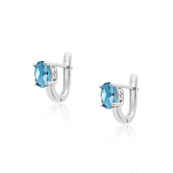 Kolczyki srebrne z niebieskim topazem w ażurowej oprawie wykonane z najwyższej próby srebra 925 – bez niklu, nie uczula. Kolczyki dodatkowo pokryte 3 warstwami szlachetnego rodu. Długość kolczyków: 23mm. Biżuteria ozdobiona naturalnymi london topazami o szlifie owalnym o wielkości 6x8mm. Wyrób jubilerski wysokiej jakości wykonany przez mistrzów jubilerstwa z ogromną precyzją oraz dbałością o detale.