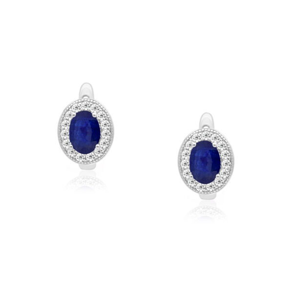 Kolczyki srebrne ozdobione szafirami i cyrkoniami wykonane z najwyższej próby srebra 925 – bez niklu, nie uczula. Kolczyki dodatkowo pokryte 3 warstwami szlachetnego rodu. Długość kolczyków: 13mm. Biżuteria ozdobiona naturalnymi szafirami o szlifie owalnym o wielkości 5x7mm oraz cyrkoniami. Wyrób jubilerski wysokiej jakości wykonany przez mistrzów jubilerstwa z ogromną precyzją oraz dbałością o detale.
