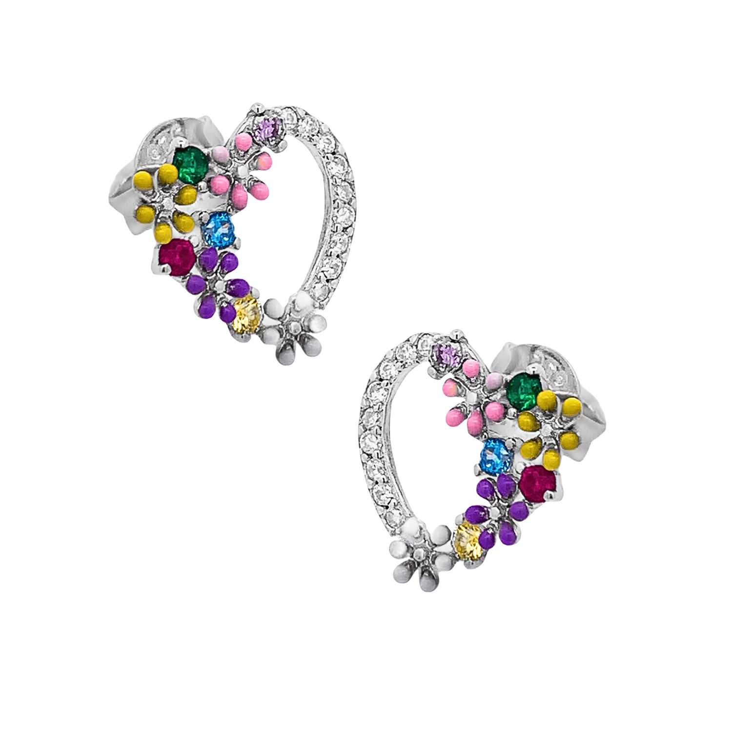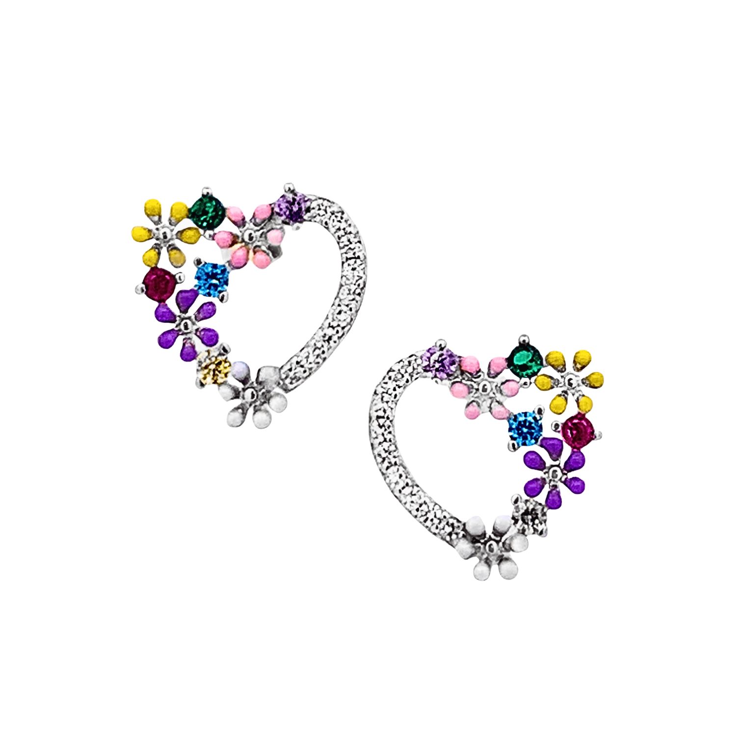 Kolczyki srebrne serca kwiaty cyrkonie wykonane z najwyższej próby srebra 925 – bez niklu, nie uczulają.