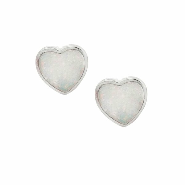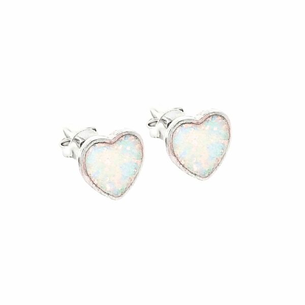 Kolczyki srebrne serduszka biały opal wykonane z najwyższej próby srebra 925 – bez niklu, nie uczulają.