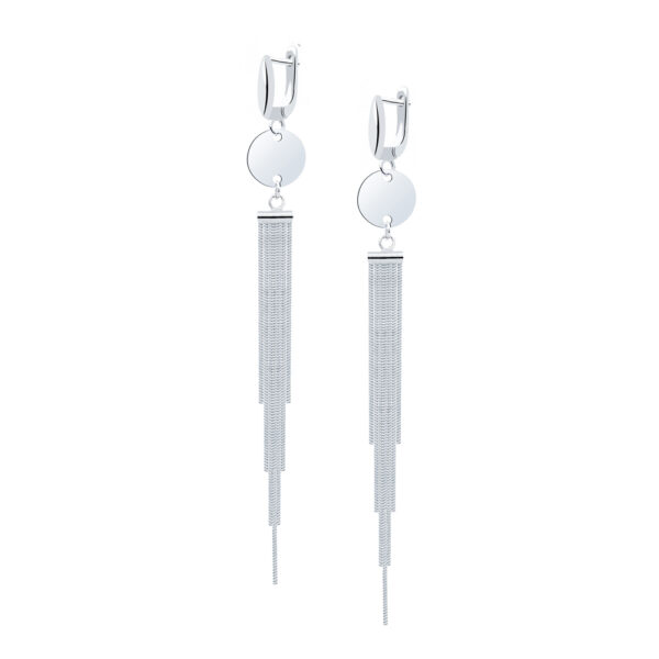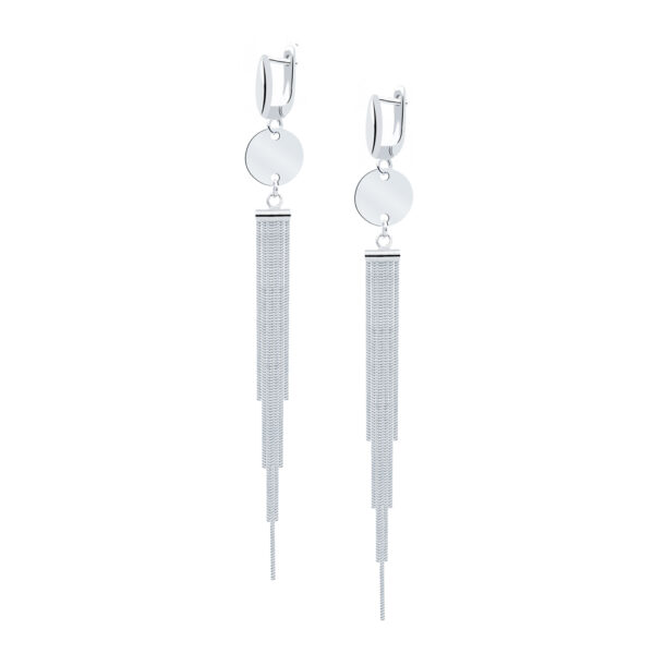 Kolczyki wykonane ze srebra 925, dodatkowo uszlachetnione warstwą rodu. Długość kolczyków wraz z zapięciem 9 cm.