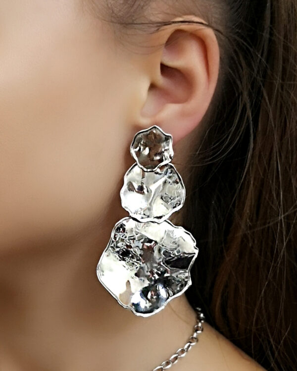 Kolczyki wykonane ze srebra próby 925. Kolczyki uszlachetnione warstwą rodu.Kolczyki zapinane na sztyft, wymiary: 45×70 mm. Kolczyki te charakteryzuje doskonały design i precyzja. Biżuteria ta to dodatek o niepowtarzalnym charakterze i niespotykanej formie.