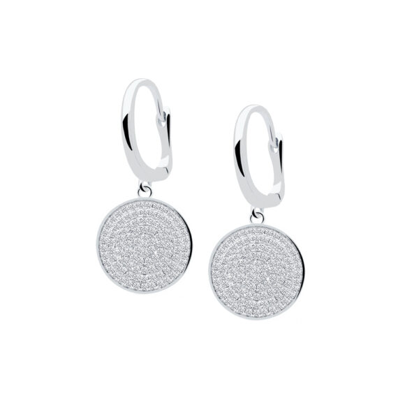 Kolczyki srebrne wiszące kółka blaszki z białą cyrkonią