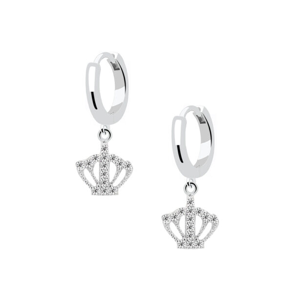 Kolczyki srebrne wiszące korony z białą cyrkonią