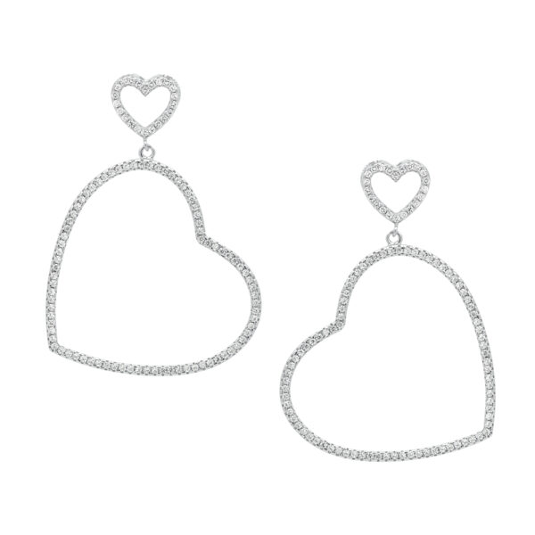 Kolczyki srebrne wiszące serca z cyrkonią wykonane z najwyższej próby srebra 925 – bez dodatku niklu, nie uczulają. Biżuteria modowa pokryta 3 warstwami szlachetnego rodu. Wielkość Kolczyków: 35×45 mm. Zapinane na sztyft. Wyrób jubilerski wykonany z ogromną precyzją oraz mistrzowskim kunsztem w każdym detale.