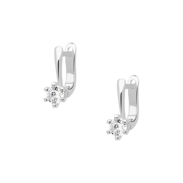 Kolczyki srebrne z białą cyrkonią. Biżuteria modowa wykonana z najwyższej próby srebra 925 – bez niklu, nie uczula. Kolczyki dodatkowo pokryty 3 warstwami szlachetnego Rodu. Długość kolczyków: 35mm. Średnica cyrkonii: 5mm. Kolczyki ozdobione cyrkonią o szlifie brylantowym o przejrzystości: AAAAA+, klasa pierwsza. Wysokiej klasy cyrkonia nadaje delikatny błyszczący efekt.