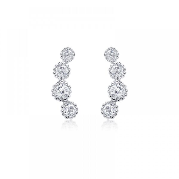 Kolczyki wkrętki wykonane ze srebra uszlachetnionego rodem próby 925 oraz ozdobione białą cyrkonią. Wielkość kolczyków: 15×3 mm. Zapięcie na wkręt.