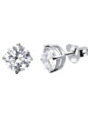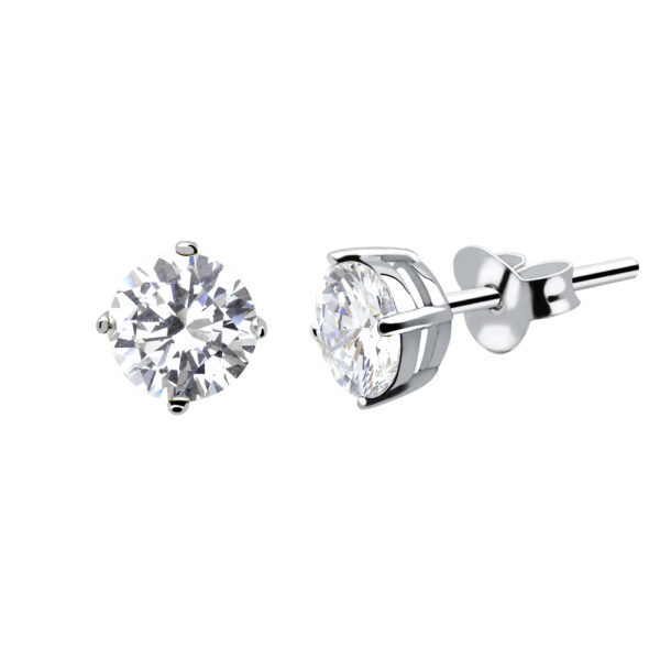 Kolczyki wykonane ze srebra próby 925. Kolczyki uszlachetnione rodem. Kolczyki ozdobione białą cyrkonią. Średnica cyrkonii: 5 mm. Kolczyki zapinane na sztyft.