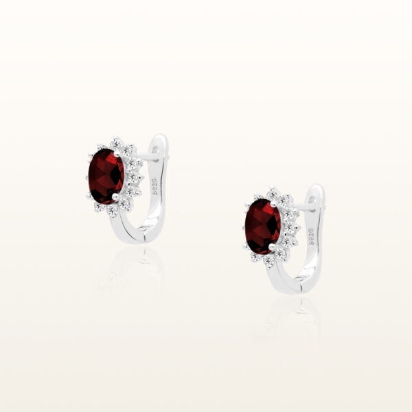Kolczyki srebrne z granatem w eleganckiej oprawie