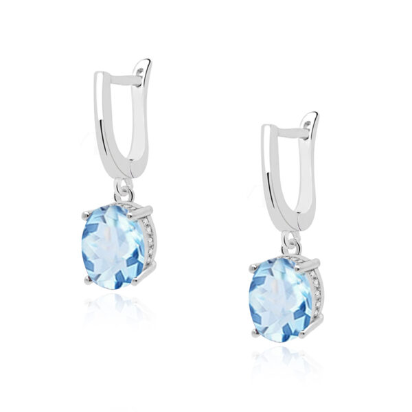 Kolczyki srebrne z niebieskim topazem i delikatnymi cyrkoniami