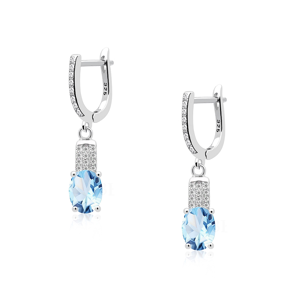 Kolczyki srebrne z niebieskim topazem oraz cyrkoniami wykonane z najwyższej próby srebra 925 – bez niklu, nie uczula. Kolczyki dodatkowo pokryte 3 warstwami szlachetnego rodu. Długość kolczyków: 30mm. Biżuteria ozdobiona naturalnymi niebieskimi topazami o szlifie owalnym o wielkości 7x9mm oraz cyrkoniami. Wyrób jubilerski wysokiej jakości wykonany przez mistrzów jubilerstwa z ogromną precyzją oraz dbałością o detale.
