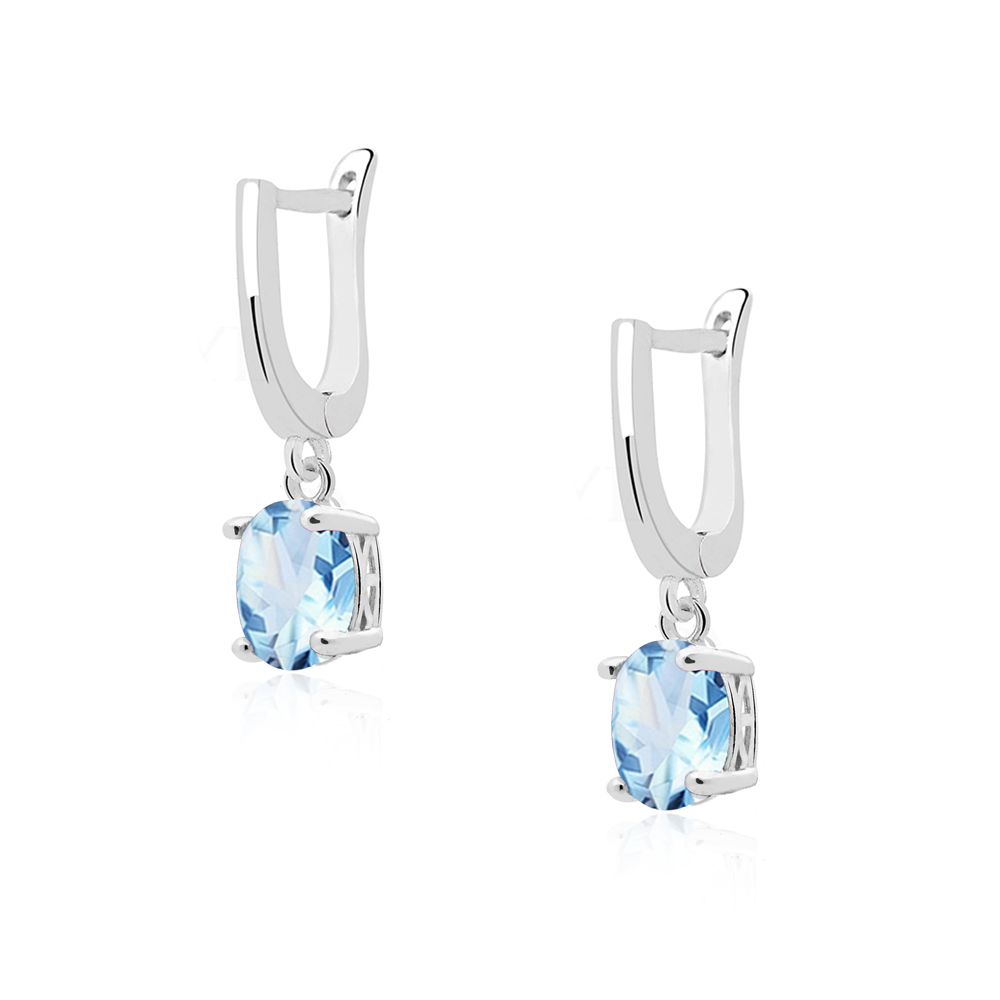 Kolczyki srebrne z niebieskim topazem w ażurowej oprawie wykonane z najwyższej próby srebra 925 – bez niklu, nie uczula. Kolczyki dodatkowo pokryte 3 warstwami szlachetnego rodu. Długość kolczyków: 23mm. Biżuteria ozdobiona naturalnymi niebieskimi topazami o szlifie owalnym o wielkości 6x8mm. Wyrób jubilerski wysokiej jakości wykonany przez mistrzów jubilerstwa z ogromną precyzją oraz dbałością o detale.