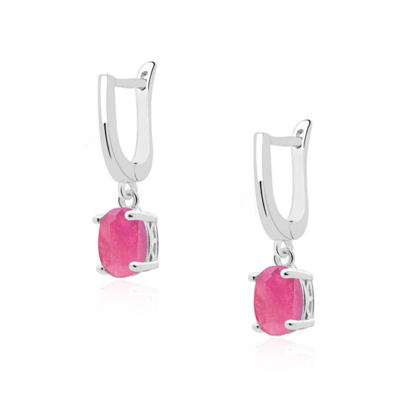 Kolczyki srebrne z rubinami w ażurowej oprawie wykonane z najwyższej próby srebra 925 – bez niklu, nie uczula. Kolczyki dodatkowo pokryte 3 warstwami szlachetnego rodu. Długość kolczyków: 23mm. Biżuteria ozdobiona naturalnymi rubinami o szlifie owalnym o wielkości 6x8mm.