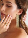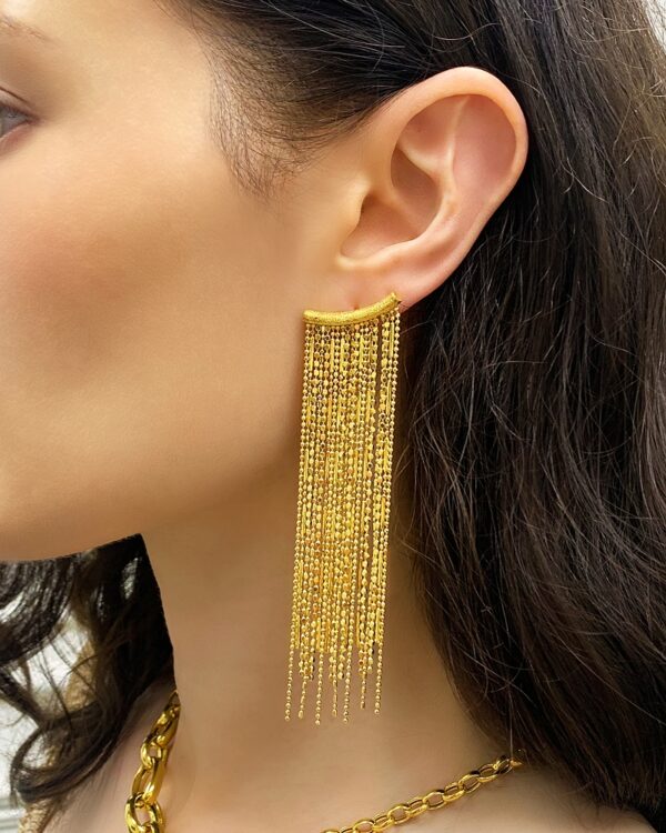 Kolczyki z wiszącymi ozdobnymi łańcuszkami zachwycają pięknymi refleksami świetlnymi. Biżuteria modowa podkreśli Twój styl, nadając mu elegancji, wyjątkowości oraz kobiecości. Długie wiszące kolczyki świetnie sprawdzą się jako niezastąpiony dodatek wieczorowych stylizacji. Tych urzekających kolczyków nie może zabraknąć w Twojej kolekcji biżuterii.