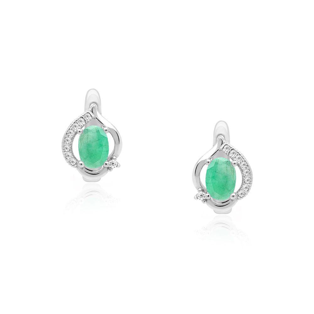 Kolczyki srebrne ze szmaragdami w subtelnej oprawie wykonane z najwyższej próby srebra 925 – bez niklu, nie uczula. Kolczyki dodatkowo pokryte 3 warstwami szlachetnego rodu. Długość kolczyków: 15mm. Biżuteria ozdobiona naturalnymi szmaragdami o szlifie owalnym o wielkości 5x7mm oraz cyrkoniami. Wyrób jubilerski wysokiej jakości wykonany przez mistrzów jubilerstwa z ogromną precyzją oraz dbałością o detale.