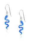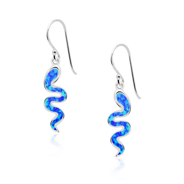 Kolczyki węże z niebieskim opalem srebrne wykonane z najwyższej próby srebra 925 – bez dodatku niklu, nie uczulają. Biżuteria dodatkowo uszlachetniona 3 warstwami rodu. Kolczyki wiszące o długości 36mm ozdobione naturalnym niebieskim opalem. Wyrób jubilerski wykonany z ogromną precyzją przez mistrzów jubilerstwa.