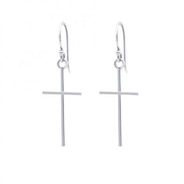 Kolczyki w kształcie krzyżyków, wykonane ze srebra próby 925. Długość kolczyków: 30 mm. Wielkość krzyżyka: 10×20 mm.