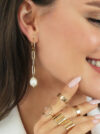 Kolczyki wiszące łańcuchy z perłą naturalną srebrne pozłacane. Biżuteria modowa wykonana z najwyższej próby srebra 925 – bez dodatku niklu, nie uczula. Drogocenna biżuteria dodatkowo pokryta 3 warstwami szlachetnego rodu. Długość kolczyków: 6 cm. Wielkość pereł: 8×10 mm. Kolczyki ozdobione perłą naturalną słodkowodną.