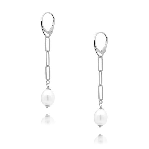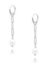Kolczyki wiszące łańcuchy z perłą naturalną srebrne