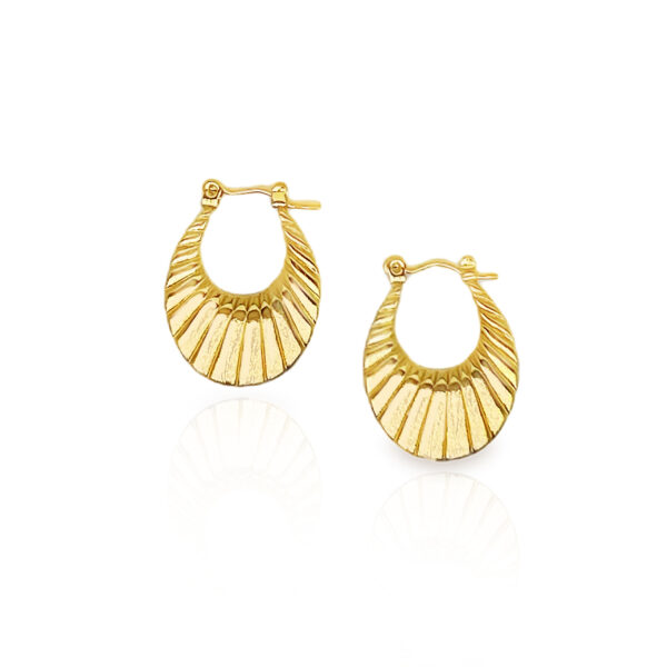 Kolczyki wiszące owalne na sztyft złote ze stali szlachetnej, które dodadzą blasku każdej stylizacji. Wykonane z najwyższej jakości stali szlachetnej, kolczyki o geometrycznych kształtach to propozycja dla kobiet, które chcą podkreślić swój indywidualizm i nowoczesny styl. Szerokość kolczyków: 20 mm, wysokość: 25 mm,