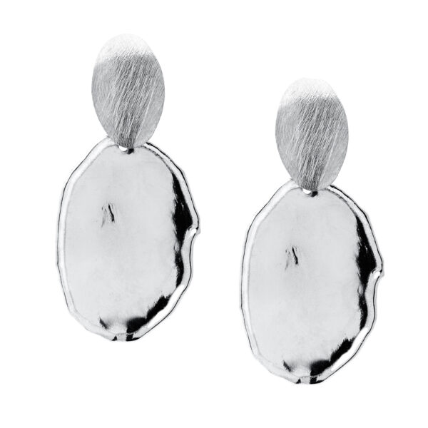 Kolczyki wykonane ze srebra próby 925. Kolczyki uszlachetnione warstwą rodu. Kolczyki zapinane na sztyft, wymiary: 20×45 mm. Kolczyki te charakteryzuje doskonały design i precyzja. Biżuteria ta to dodatek o niepowtarzalnym charakterze i niespotykanej formie.