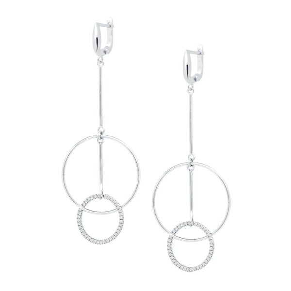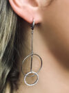 Kolczyki wykonane ze srebra próby 925, dodatkowo uszlachetnione rodem. Średnica kółek 12-25mm. Długość kolczyków: 75 mm.