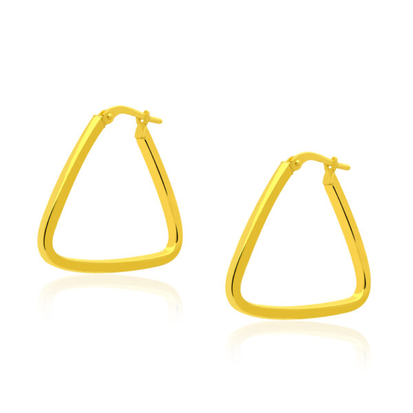 Kolczyki wiszące trójkąty srebrne pozłacane wykonane z najwyższej próby srebra 925 – bez dodatku niklu, nie uczulają. Kolczyki pokryte 3 warstwami 24 karatowego złota. Długość kolczyków: 27mm. Biżuteria najwyższej jakości, wykonana z precyzją i dbałością o każdy detal przez mistrzów sztuki jubilerskiej.