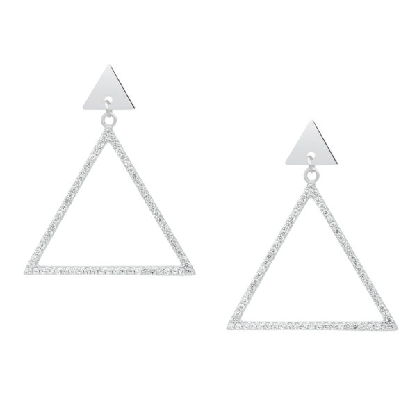Kolczyki wiszące trójkąty srebrne z cyrkonią wykonane z najwyższej próby srebra 925 – bez dodatku niklu, nie uczulają. Biżuteria modowa pokryta 3 warstwami szlachetnego rodu. Wielkość Kolczyków: 30×35 mm. Zapinane na sztyft. Wyrób jubilerski wykonany z ogromną precyzją oraz mistrzowskim kunsztem w każdym detale.